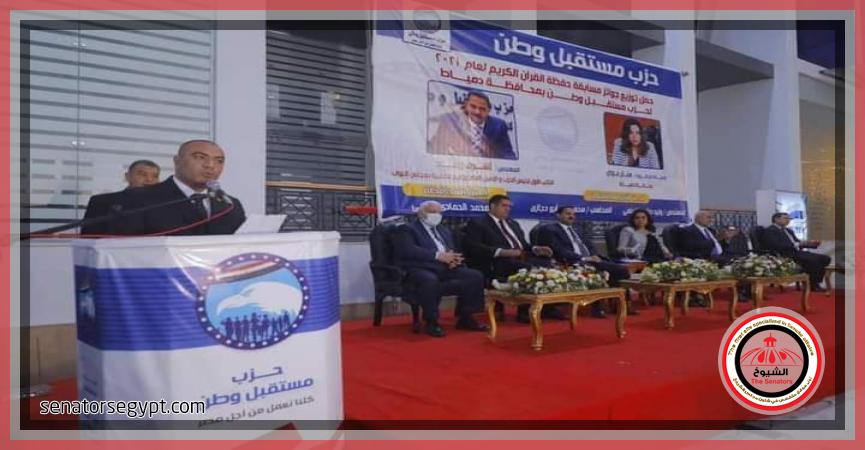 الحمدلله تمت المهمة بنجاح وتسليم جوائز مسابقة حفظة القران الكريم وبهذه المناسبة الكبيرة أتقدم بخالص الشكر والتقدير للنائب أشرف رشاد النائب الأول والأمين العام لحزب مستقبل وطن وعضو مجلس النواب وزعيم الأغلبية والدكتورة منال عوض محافظ دمياط وجميع نواب محافظة دمياط والقيادات التنفيذية وأولياء الأمور وكل ضيوف الحفل الكريم الذي شرفونا بحضورهم فبدونهم كانت فرحتنا ناقصة ولكن بفضل من الله اكتملت المهمة وعمت الفرحة علي الجميع وعلي أولادنا من حفظة القران الكريم وأيضا أتقدم بالشكر والتقدير لفريق العمل بمكاتب النائبين محمد أبو حجازي ووليد التمامي فكنتم النواة الأولي لنجاح ذلك العمل وأيضا أشكر شباب حزب مستقبل وطن المنظمين للحفل علي ما بذلوه من مجهود كبير فكنتم أيقونة النجاح لذلك الحفل وأيضا كل الشكر والتقدير لمديرية الأوقاف بدمياط والشيخ محمد سلامة وكيل الوزارة علي الإشراف علي المسابقة وكل الشكر لجميع الصحفيين الذين شرفونا بالحضور وأيضا إدارة فندق لمار حقيقي كنتم علي قدر كامل من المسؤلية وفي نهاية حديثي أقول أننا دائما نعمل علي عمل فاعليات وأنشطة تقربنا للشارع الدمياطي من أجل الوقوف علي نقطة واحدة وهي مصلحة المواطن الدمياطي
