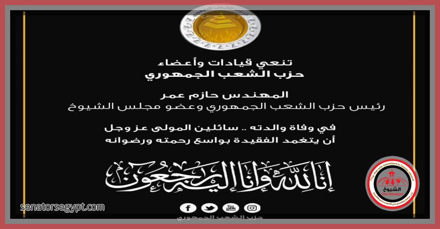 ”بوابةالشيوخ” تتقدم بخالص التعازي في وفاة والدة رئيس حزب الشعب الجمهوري النائب حازم عمر